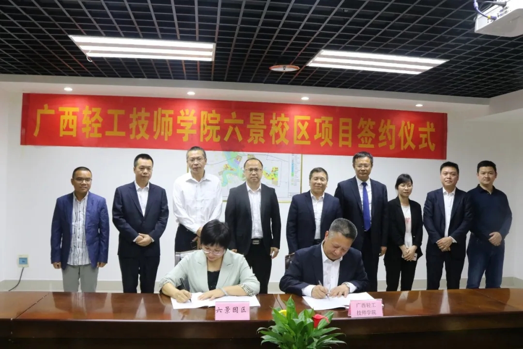 4月29日下午,南寧六景工業(yè)園區(qū)管理委員會、廣西輕工技師學(xué)院在六景工業(yè)園區(qū)內(nèi)正式簽訂廣西輕工技師學(xué)院六景校區(qū)項目投資合同書,標志著交投園區(qū)公司服務(wù)跟進的又一項目簽約。
