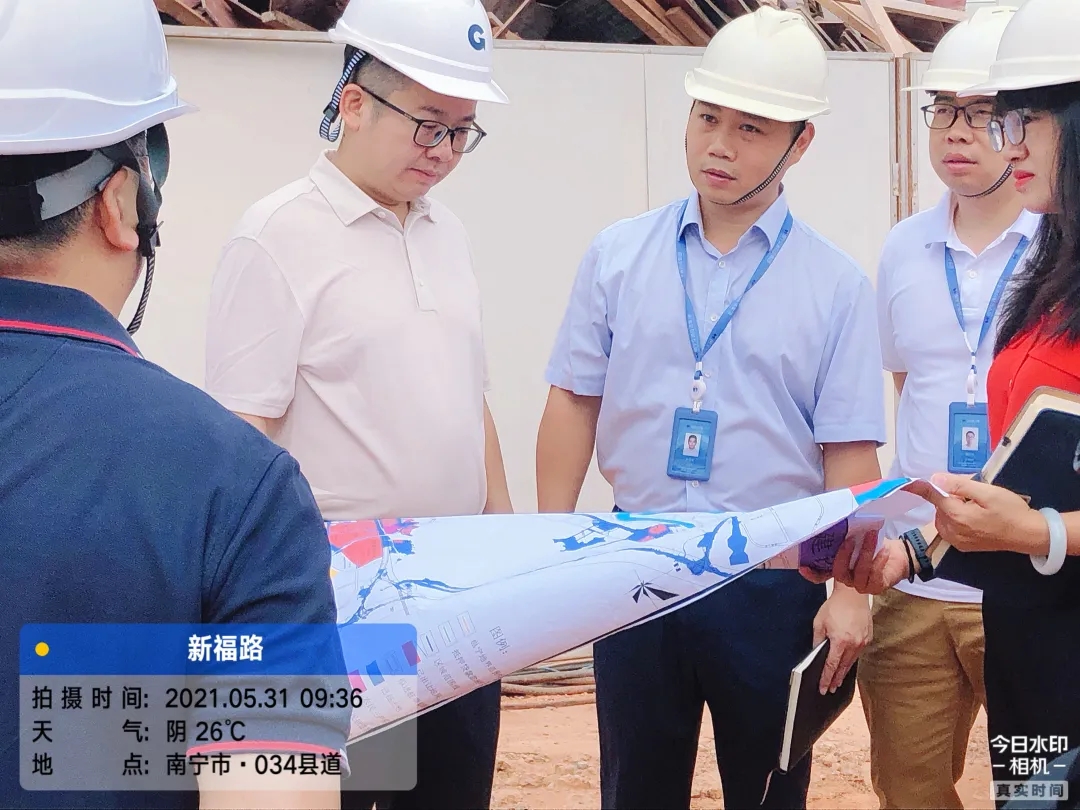 5月31日,邕寧區(qū)區(qū)長何翔一行到牛灣港產(chǎn)業(yè)園片區(qū)的橙山路、巧紅路、新巧路項目開展調(diào)研工作,交資公司董事長李發(fā)奕陪同調(diào)研。